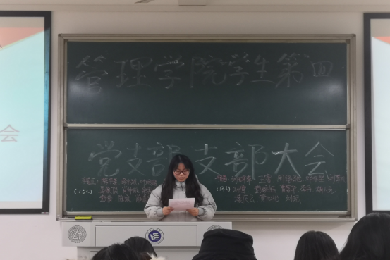 会议进行到第二个部分,发展对象上台汇报申请入党过程中表现、家庭及社会关系政历情况和需要向组织说明的问题,然后由介绍人介绍被发展人基本情况、思想状况、表现情况、政治觉悟及入党动机和不足等,宣读介绍人意见,最后由正式党员无记名投票表决。在这整个过程中,每一个被发展对象都详尽的汇报了自己在入党过程中思想的转变及在入党过程中学习、生活、工作等方面情况,并经由其介绍人宣读意见和熟悉人发言后由正式党员表决并都全票通过。