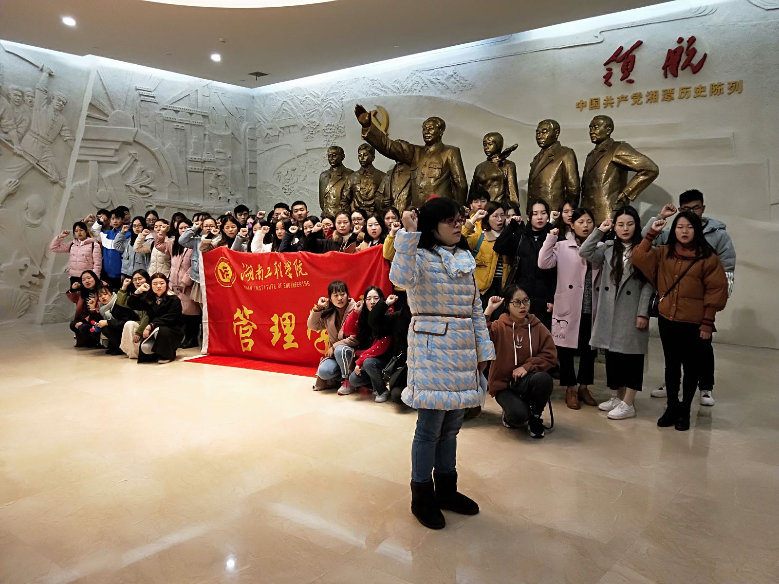 2018年12月4日星期二上午9:30,中共伟德国际victor1946管理学院学生党支部全体预备党员于湘潭市党史馆进行了庄严宣誓,学院各支部书记,2018年全体预备党员参与了此次宣誓活动。