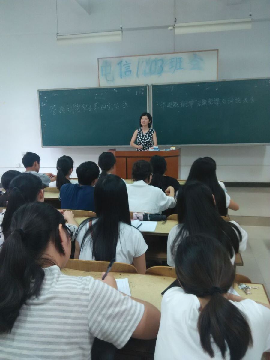 6月14日下午4:30管理学院学生第四党支部在C103召开了“讲规矩、有纪律”专题党课,在会上,支部书记罗荃老师从三个方面阐述“讲规矩、有纪律”党课的主要内容:一是共产党员为什么要讲规矩、有纪律?二是共产党员应守的规矩、纪律有哪些?三是共产党员如何讲规矩、有纪律?