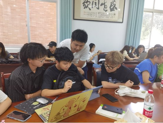 讲解完后,肖城兴老师走下讲台与同学们就平台操作中遇到问题进行了一对一互动,肖老师对同学们所提出的每一个问题都进行详细而精准的一一解答。