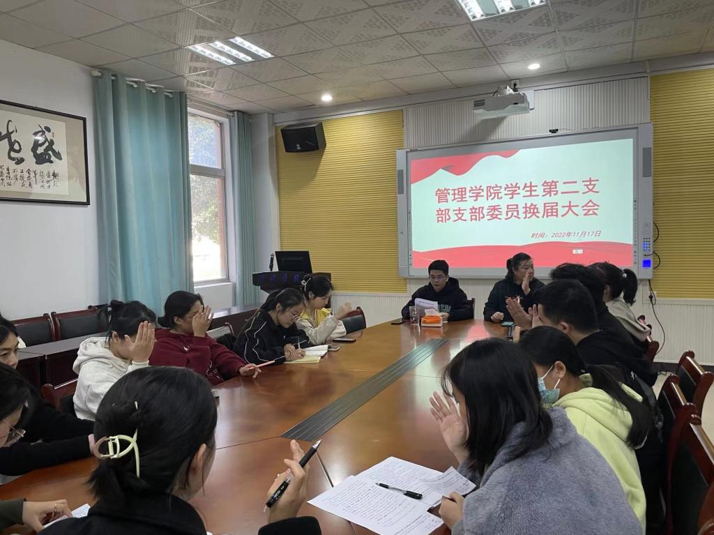 中共伟德国际victor1946管理学院学生第二支部委员会于11月17日12点10分在F座104室召开党员换届大会。本次党员大会由支部书记罗蒙同志主持,共有22人参会。本次党员大会主要内容是听取和审查上届委员会工作报告并进行支部委员会换届选举工作。
