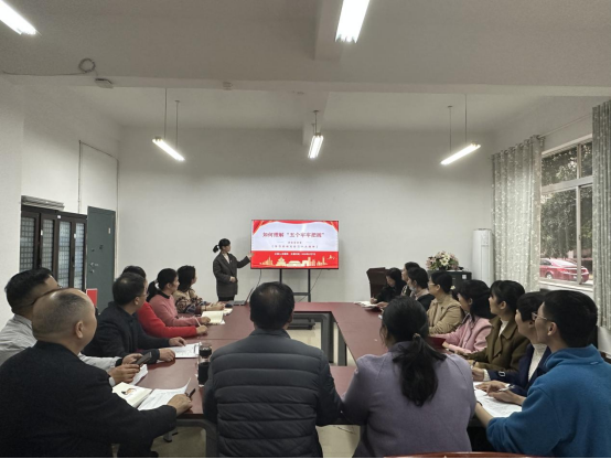 为进一步营造贯彻落实党的二十大精神的浓厚氛围,充分用好讲党课这一党的组织生活制度,践行“一月一课一片一实践”活动,2023年3月7日下午,全国党建工作样板支部培育创建单位、管理学院教工第二党支部书记刘喜梅在F103支部党员活动室为支部全体党员讲授新学期第一堂党课,主题为“如何理解‘五个牢牢把握’”。