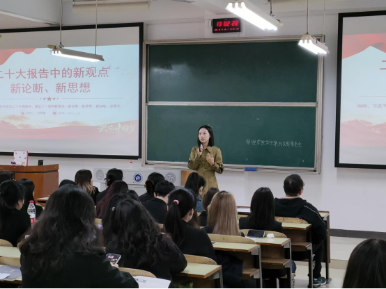 为深入学习贯彻党的二十大会议精神,2023年3月7日下午,管理学院学生第四党支部在D-303组织开展“学习党的二十大报告中的新观点、新论断、新思想”新学期第一堂党课。本次党课由支部书记陈景楠、支部副书记彭小玲主讲,支部全体党员参加。