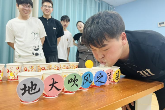 此次主题党日活动采取趣味运动的形式,学院学生党员们齐聚一堂,现场气氛热烈而融洽。党员们分成四个小组,通过接力形式参与以廉洁为主题的四项趣味游戏。在“清廉风,大家吹”项目中,大家向代表着廉洁的桶中投掷羽毛球,树立心中廉洁的底线;在“抽腐风,廉不倒”项目中,大家抽出“腐败”纸片,保持象征廉洁的纸杯不倒;用清廉之风吹走杯中代表腐败的球,以廉洁之球击倒代表各类不良作风的水瓶.。