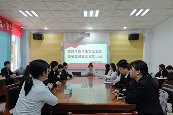 为进一步壮大支部党员的队伍,增强党组织凝聚力。2024年5月16日,管理学院学生第三支部委员会在F104召开预备党员转正大会,本次会议就张绍艳等5名党员的转正问题进行讨论和决议。会议由支部书记彭小玲主持,支部全体党员参加。