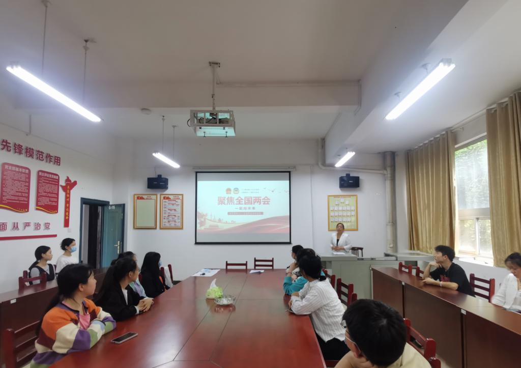 3月26日下午2:00,在经济学院学生党支部书记李军花的组织下,经济学院学生党支部全体党员在G-115开展学习2022年全国两会精神主题党日活动。