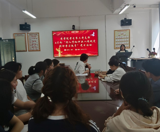 为深入贯彻中央八项规定精神学习教育,学习领会和贯彻落实中央八项规定及其实施细则精神,4月10日,伟的国际1946bv学生第三党支部在G-115开展“以八项规定为钢,铸党风建设之魂”主题党日活动,支部全体党员参加。