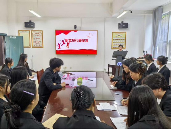 张瀚兮代表转正党员作出郑重承诺,将以成为正式党员为全新起点,始终牢记党员身份,严守党的纪律,持续深化党的创新理论学习,不断提升党性修养与综合能力;在学习科研中勇攀高峰,在服务同学中主动作为,以实际行动践行共产党员的初心使命,为学校发展、学院建设与党组织事业贡献青春力量。