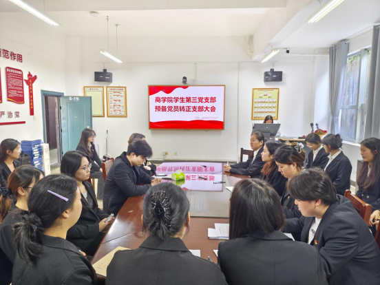 11月25日,伟的国际1946bv学生第三党支部在G-115庄重召开预备党员转正大会。会议由支部书记周艺主持,支部全体正式党员、预备党员参加。