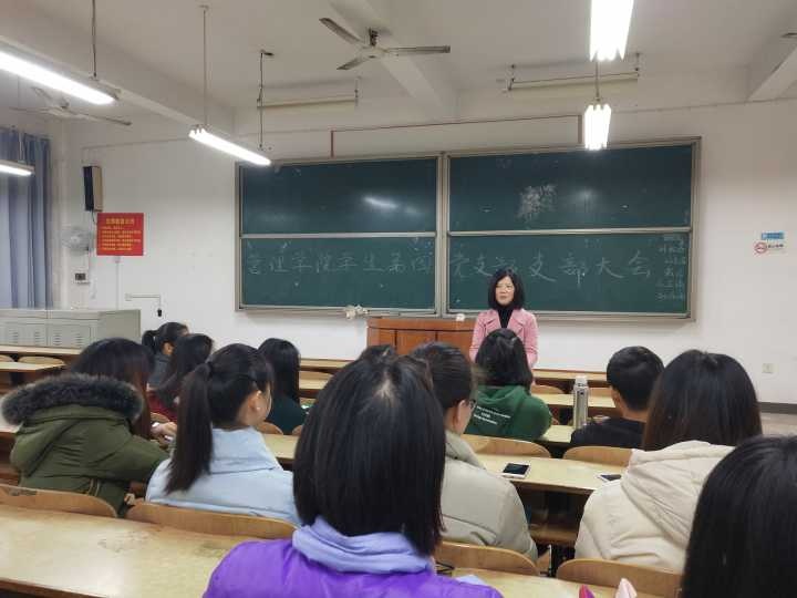 11月22日中午,管理学院学生第四党支部在教学楼D202召开了学生发展对象转预备党员会议,就石芷瑜,刘雨薇,戴滔,郭佳雨四位发展对象转预备党员问题展开讨论。本次会议由支部书记罗荃老师主持,全体正式党员和预备党员,以及四位发展对象与会。