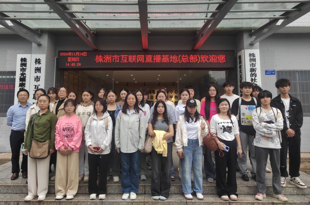 2024年11月14日,为增强电商专业学生对电商行业发展的认识,拓展实践视野,电子商务教研室在开展认识实习之际,组织我校电子商务专业23级学生参观株洲市直播基地、动力谷展示中心