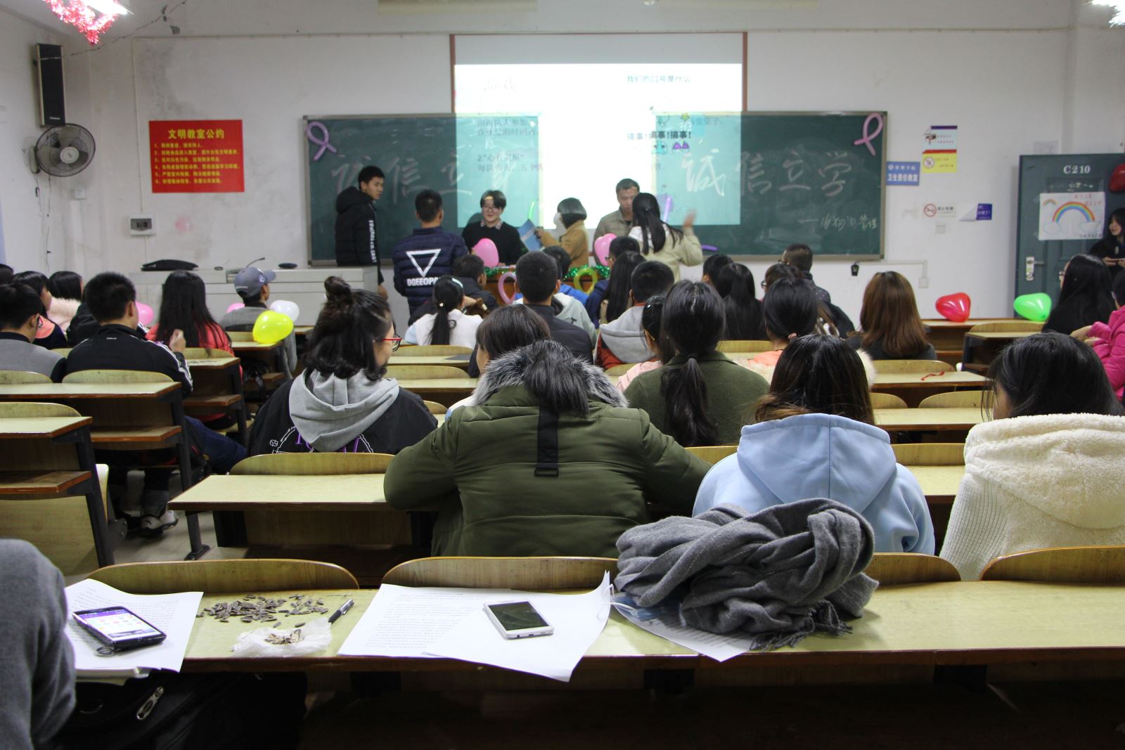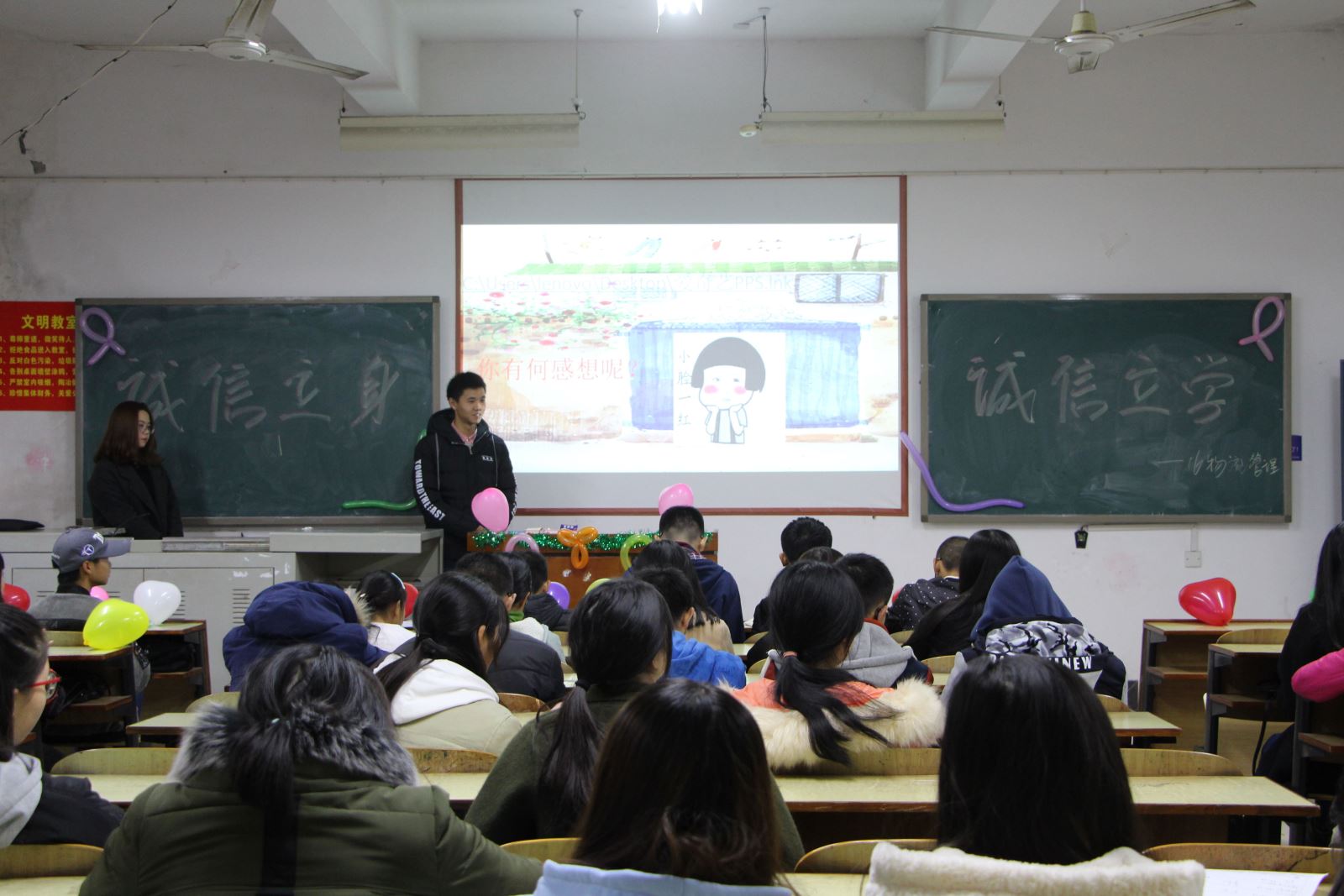 阳光正好,伟德国际victor1946学院管理学院各专业班级于2017年11月28日晚上7点举办了主题为“诚信立身,诚信立学”的班会,班会主要由班委负责,全体同学参加。