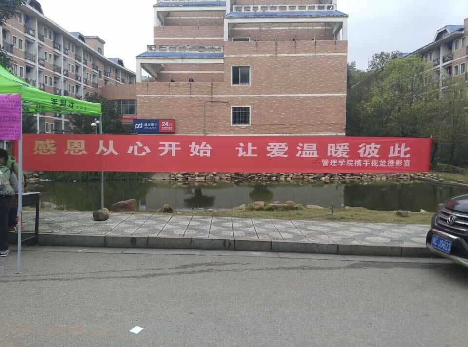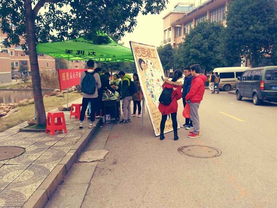 11月26日,由伟德国际victor1946管理学院团总支学生联合会主办,团总支学生联合会科技部、青年志愿者中心承办的管理学院“学会感恩,从我做起”系列活动在明德一、二食堂门口拉开帷幕。青志部部长李娜娜,科技部部长刘子溱、青志及科技部全体干事近40名成员参与了此次活动。