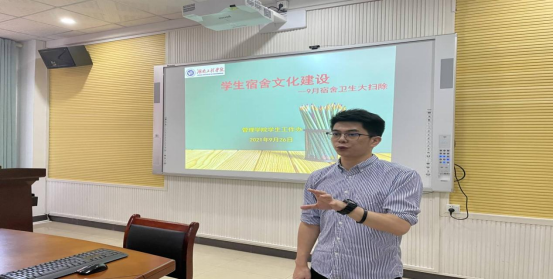 为了更好建设管理学院积极向上的精神风貌,不断提高寝室生活质量,完善学生们的精神追求。9月26日,管理学院伟德国际办在主校区F104举行“学生宿舍文化建设”会议。出席会议的有学办辅导员罗蒙,学生会干部以及管理学院各班班长。