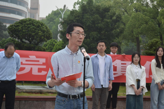 文山东书记在国旗下发表讲话,他强调作为新时代中国青年,要肩负中华民族伟大复兴的责任和使命,要始终胸怀“我将无我,不负人民”之心,不断增强爱国情感和勇于担当的责任感,用实际行动展示新时代青年对当代中国发展的责任担当。