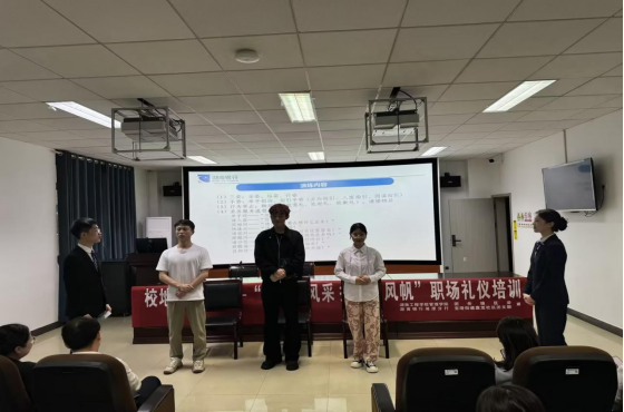 为提升大学生的求职技能和就业竞争力,帮助大学生掌握正确的职场礼仪,建立良好的职业形象,4月16日,我院联合共青团岳塘区委、岳塘区宝塔街道盘龙社区、湖南银行湘潭分行开展以“展礼仪风采 扬成功风帆”为主题的职场礼仪公益培训活动。100余名党员和青年学生参加此次活动。