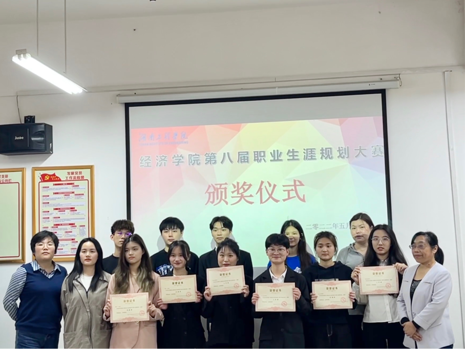 2022年5月16日12:40,经济学院在G-115会议室举办了第八届职业生涯规划大赛。经济学院党总支副书记卢时光老师、经济学院学办主任戴晶晶老师、经济学院辅导员李军花老师、经济学院刘佳馨老师、管理学院包海燕老师出席并担任评委,2020级共十名同学参加了本次比赛。