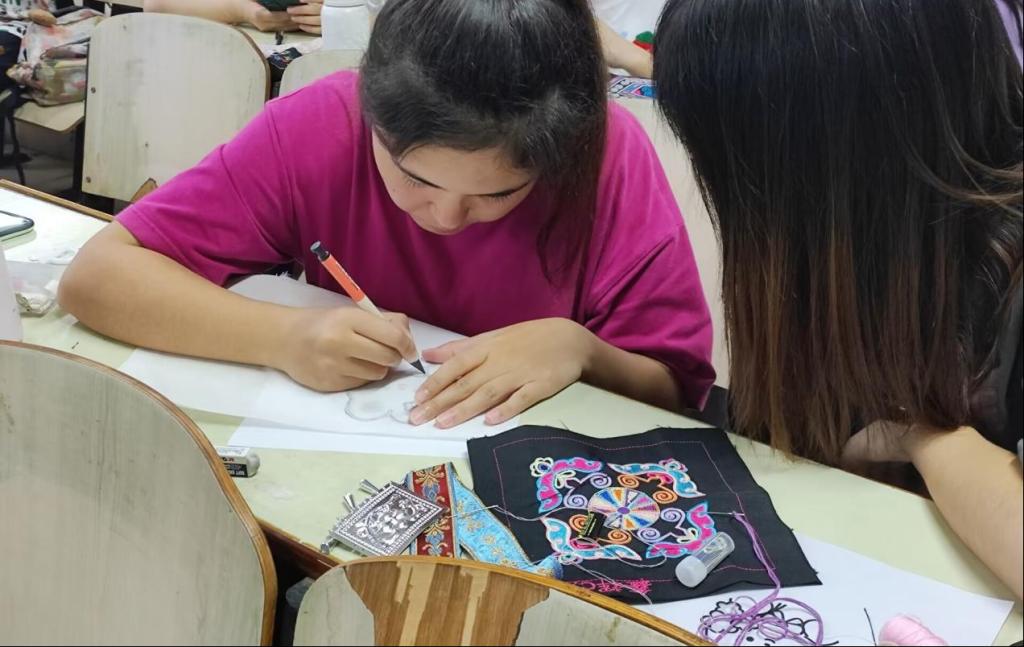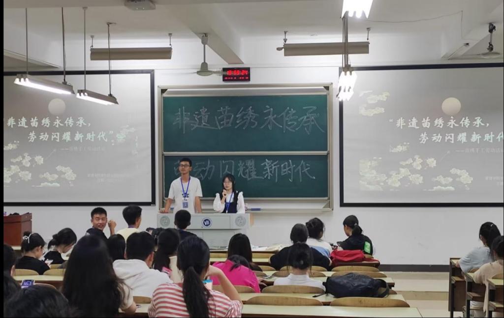 为使广大青年学子重新认识即将消逝在时代浪涛中的非遗文化,感受中华传统文化之美,改变年轻一代对苗绣已淡出日常生活的现状,同时加强学生劳动教育,11月14日,管理学院在主校区D302教室举行以“非遗苗绣永传承,劳动闪耀新时代”为主题的手工劳动教育活动。通过动动小手,丰富我院学子的课余生活,邂逅典籍里的中华文化。