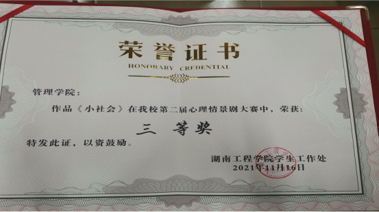 管理学院心理部成员们对本次获奖感到十分荣幸,这极大鼓舞了成员们的士气,向着优秀继续前进。在观看大赛所有参赛剧目后,在场所有同学和领导们都受益匪浅。本次大赛顺利结束,赛后反响热烈,有利于传播更多心理知识,养成良好的心理状态,营造良好校园氛围。