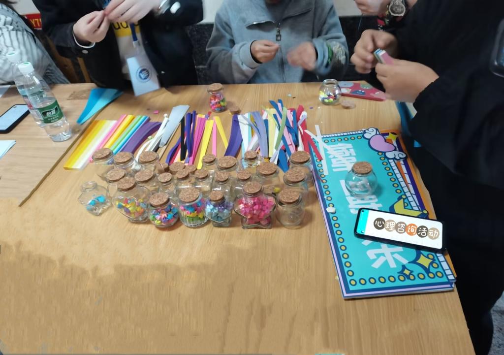 活动伊始,我院心理部干事与心理朋辈引导同学有序参与活动。同学们积极了解心理健康知识,填写专业的心理健康测量表并与老师进行交流。老师为同学的测量表中所体现的心理健康状况做详细分析,耐心地解答同学的心理困惑,为同学进行适当的心理调适。“心语星愿”活动更是吸引大家的目光,在同学们积极参与下,一张张笑脸与一颗颗纸星星组成了一副其乐融融的温馨画面。现场气氛热烈,活动得到了积极的反响。