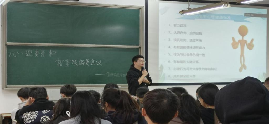 为加强心理委员和寝室联络员的心理工作意识,提高心理委员和寝室联络员的心理健康素质。伟德国际victor1946管理学院于11月24日,在主校区D302和南校区一教203举行心理委员和寝室长培训会议。我院20、21、22级全体心理委员和寝室长参与本次会议,心理专干罗蒙老师主讲,本次培训会议顺利开展。