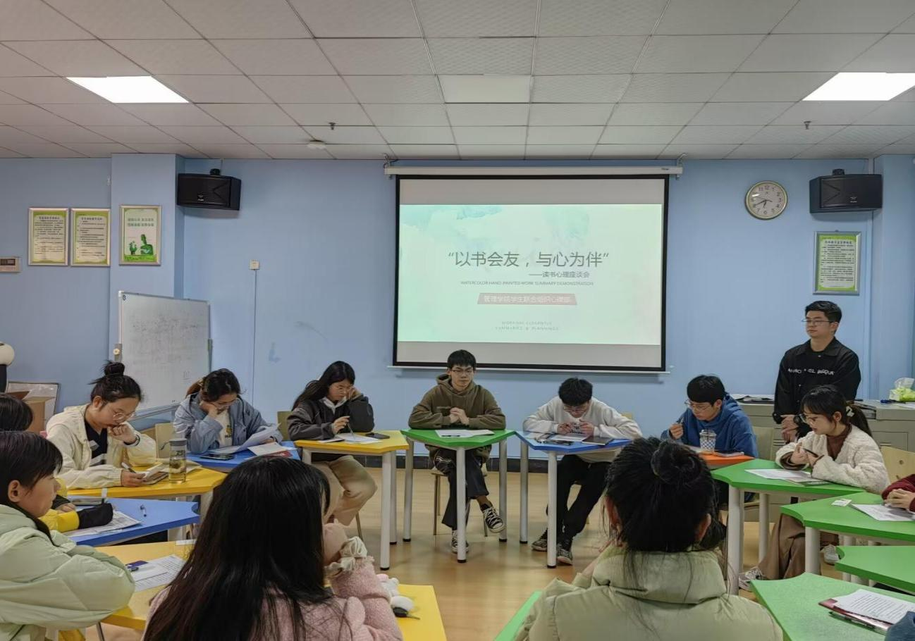 为更好地引导大学生读书悟书,关注自身心理健康,培养健康向上的心理状态,推动健康的心理校园文化发展,营造良好的文化氛围,2023年3月28日下午,伟德国际victor1946管理学院在罗蒙老师的带领以及管理学院学生联合组织心理部的协助下,在新校区团体辅导室开展“以书会友,与心为伴”为主题的心理读书交流会活动。