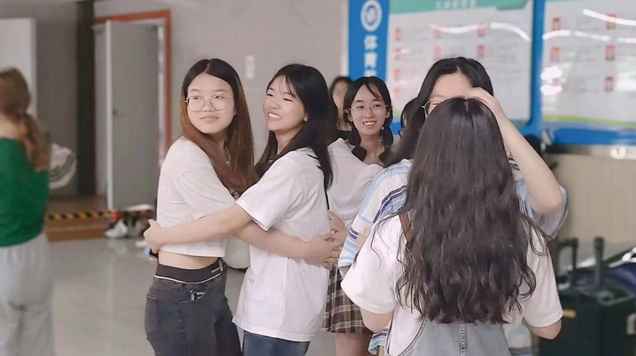 趁着微风吹拂,在罗蒙老师的组织下,同学们将手中创作完成的风筝放飞,风筝乘着风,跟随着同学们奔跑的脚步。有的同学为飞起的风筝欢呼雀跃,有的同学虽没有成功但也不气馁,欢声笑语回荡在人群之中。放风筝活动之后,罗蒙老师组织大家进行素质拓展活动。