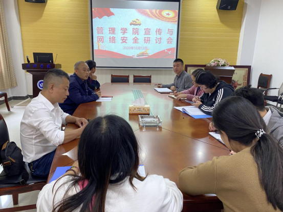 20201012上午,管理学院党委召集党委委员和学办辅导员开展“宣传与网络安全”研讨会。