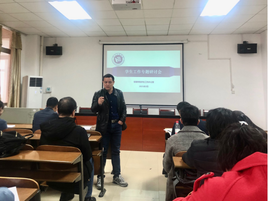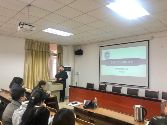 管理学院党委副书记张宏对学生管理工作做专题汇报。首先对管理学院2020年学生管理工作进行回顾,对学院学生管理工作的主要现状进行了介绍,并重点围绕班主任日常工作、南校区学生管理工作、学生宿舍管理工作、学生心理工作、诚信考试工作、就业工作等学生管理工作中存在的问题提出进一步做好学生管理工作的思路和举措。