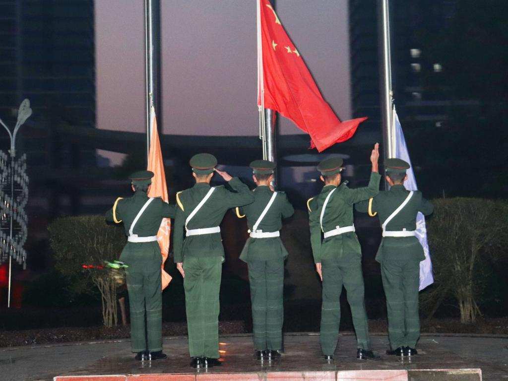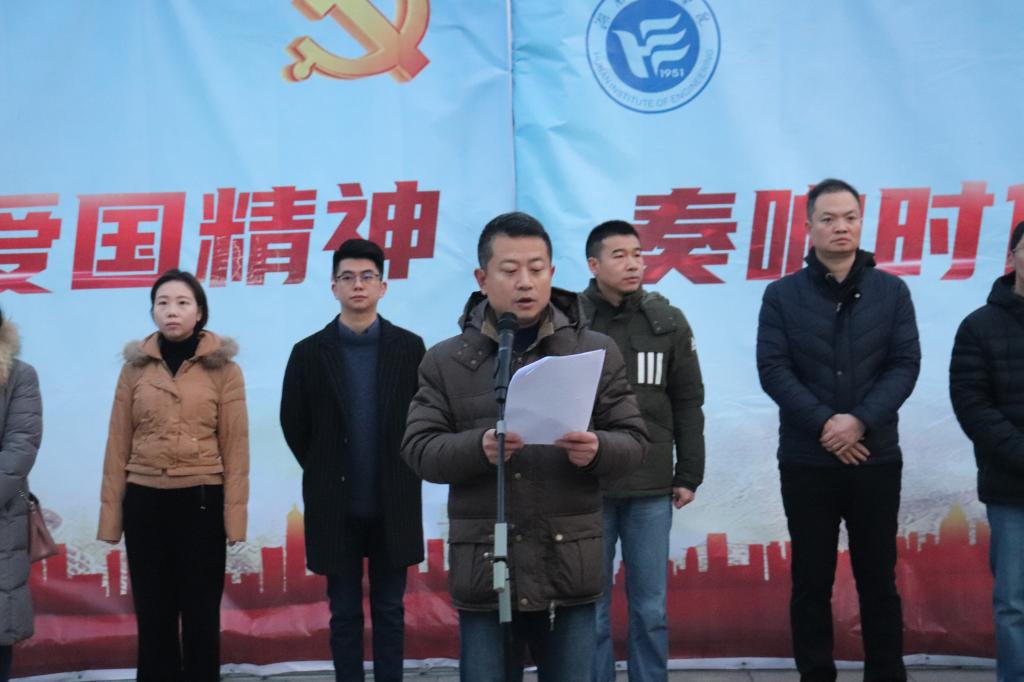 七点整,升旗仪式在铿锵有力的国歌中正式开始。学院党委书记钱祖煜发表国旗下的讲话,他指出,要把爱国主义教育作为永恒主题,广泛开展理想信念教育,让爱国主义成为每一个中国人的坚定信念和精神依靠。要加强政治领导、思想引导,坚持用社会主义核心价值观引导学生勤学、修德、明辨、笃实。同学们应该将爱党爱国内化于心,外化于行,切实提高学习能力。