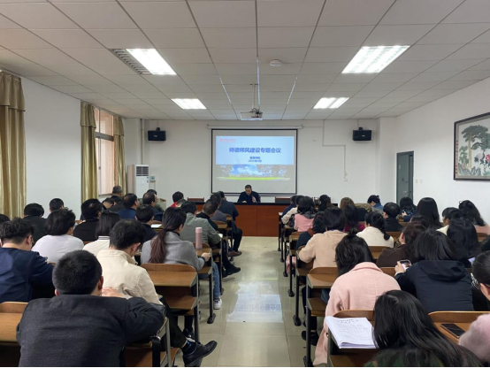 2022年4月12日下午,管理学院在G505召开师德师风建设专题会议,由徐运保院长主持,全体老师参加。