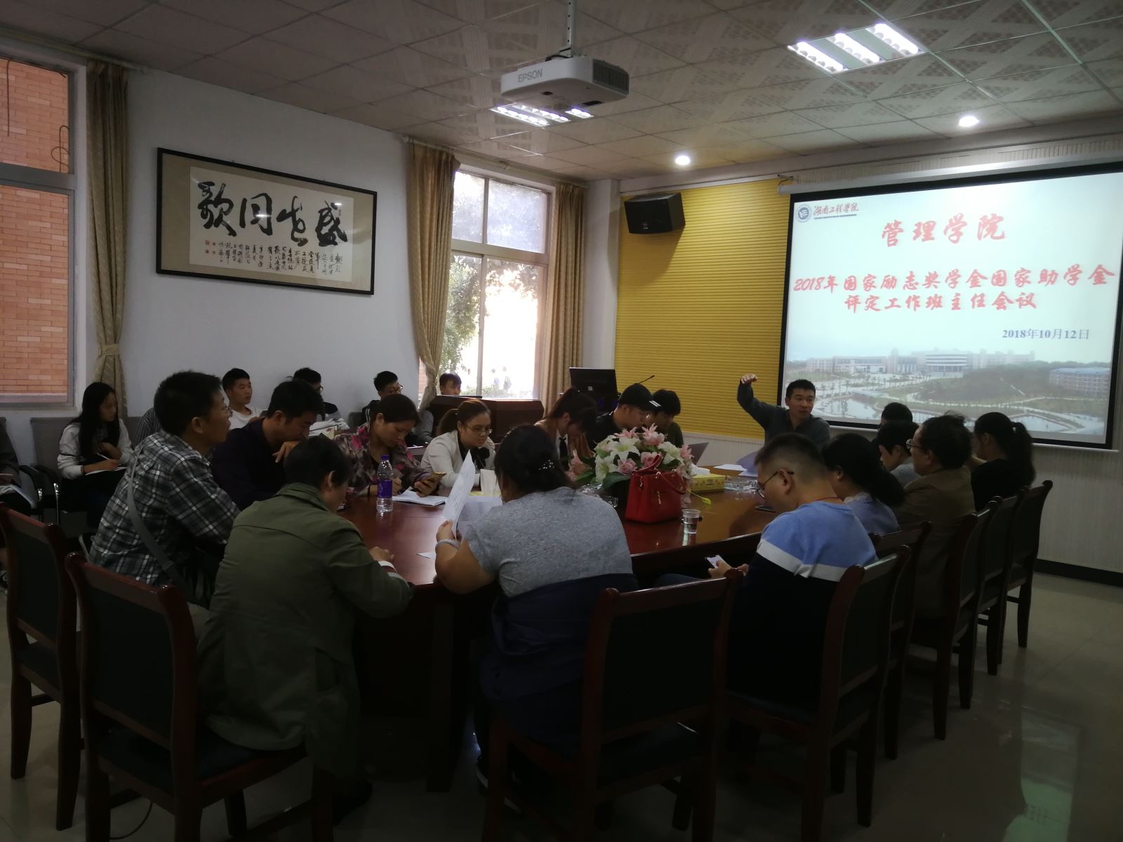 我校2017-2018学年国家奖助学金评定和发放在即,为了确保各项工作有序开展,10月12日下午,管理学院在教学楼F栋104组织召开了国家励志奖学金、国家奖助学金评定工作班主任会议。会议由院党总支副书记钱祖煜主持。全体辅导员、班主任老师出席会议。