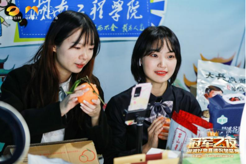 大赛在我校启动以来,团委、创新创业学院和我院精心组织,通过线上线下宣传,吸引各学院的1000余名学生参加。参赛的选手线上组成16支直播团队,在抖音、淘宝上进行直播,累计曝光量达100余万次。线下开展摆摊设点销售、进班营销、班级团购等活动,积极邀请师生参与进来,用行动帮扶湖湘地区的农特产品打开销路,做到高校助力乡村振兴。