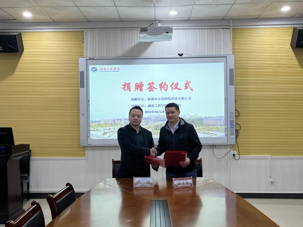 会后,徐运保和尹辉分别代表管理学院与深圳市中设网络科技有限公司签署直播设备捐赠协议。