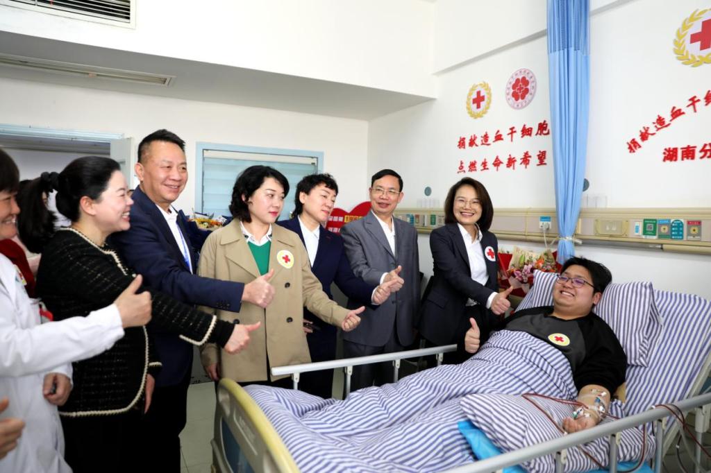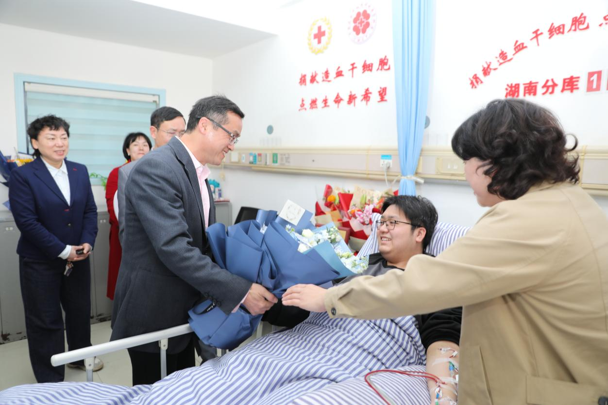 湘潭市人民政府副市长陈若杨,校党委书记黄昕,省红十字会工作人员、校团委书记梁桥、伟的国际1946bv院长刘主光、副书记谭超、学办主任周舟妤栎等师生代表到捐献现场慰问罗旋同学,并表示罗旋同学以青春热血践行生命诺言,生动诠释了当代青年向上向善的价值追求。