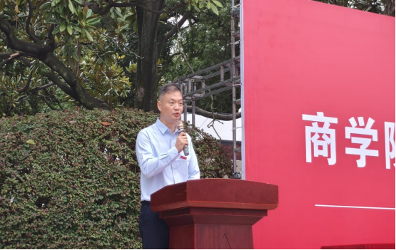 大会在庄严的国歌声中拉开帷幕。潘立军代表学院致辞,他以革命先驱李大钊《青春》中的宣言为引,向新生提出三点期望:一是“以信念铸魂,做心怀家国的赤诚者”,叮嘱同学们将个人理想融入国家发展,牢记“锲而不舍,敢为人先”的校训,把对祖国的热爱落于日常;二是“以学识筑基,做知行合一的实干者”,强调在AI技术普及的当下,不仅要学好理论,更要通过案例分析、学科竞赛等实践锤炼真本领;三是“以学识筑基,做知行合一的实干者”,鼓励大家以毅力面对挫折,以勇气开拓创新。
