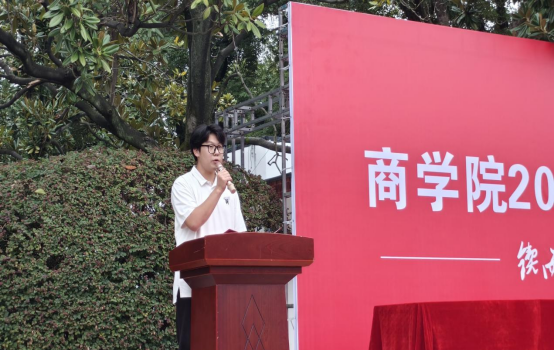新生代表、物流管理2501班黄景阳在发言中表示:“我们如同渴望翱翔的鹏鸟,终于在此刻迎来了托举我们振翅高飞的‘大学之风’”。随后,她带领全体新生庄严宣誓,“秉承锲而不舍、敢为人先的校训,怀社稷苍生之念,担民族复兴之责”的誓言铿锵有力,彰显了新生们的青春担当。