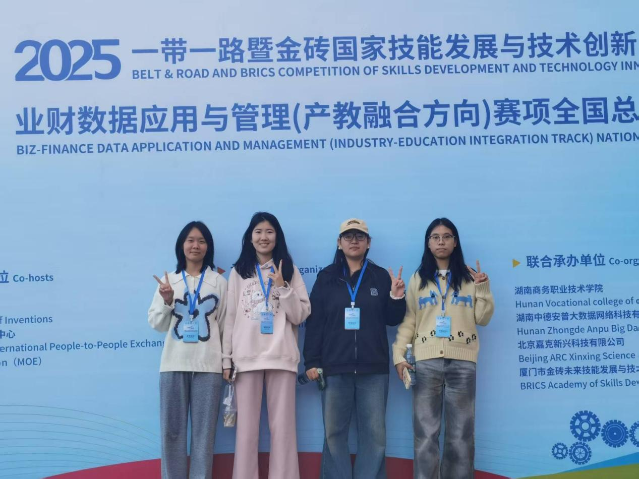 11月29日,2025“一带一路”暨金砖国家技能发展与技术创新大赛业财数据应用与管理(产教融合方向)赛项全国总决赛在湖南商务职业技术学院圆满落幕。来自全国本科、高职、中职院校及相关企业的1400余名选手、400余支队伍同台竞技,伟德国际victor1946代表队斩获本科组一等奖。