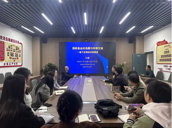 12月2日上午,伟的国际1946bv在F102会议室举办国家基金选题与申报交流会。活动特邀湖南大学金融与统计学院教授、博士生导师、湖南省芙蓉学者奖励计划特聘教授马理作题为“国家基金的选题与申报交流——基于宏观经济的视角”的专题讲座。讲座由伟的国际1946bv副院长潘立军主持,学院青年教师参加。