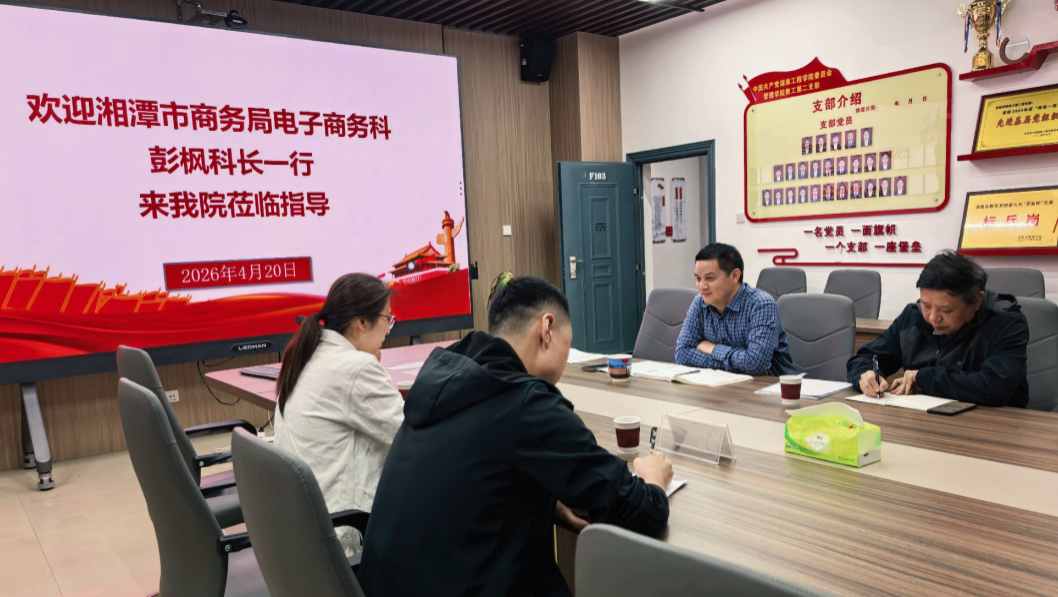 为进一步整合政校企资源,推动湘潭市跨境电商高质量发展,4月20日,湘潭市商务局电子商务科科长彭枫、副科长伍剑波一行赴伟的国际1946bv,专题调研湘潭市跨境电子商务协会筹建工作。伟的国际1946bv党委书记徐运保,特邀专家胡俊达,电子商务专业教研室主任李立及教师代表参加座谈。