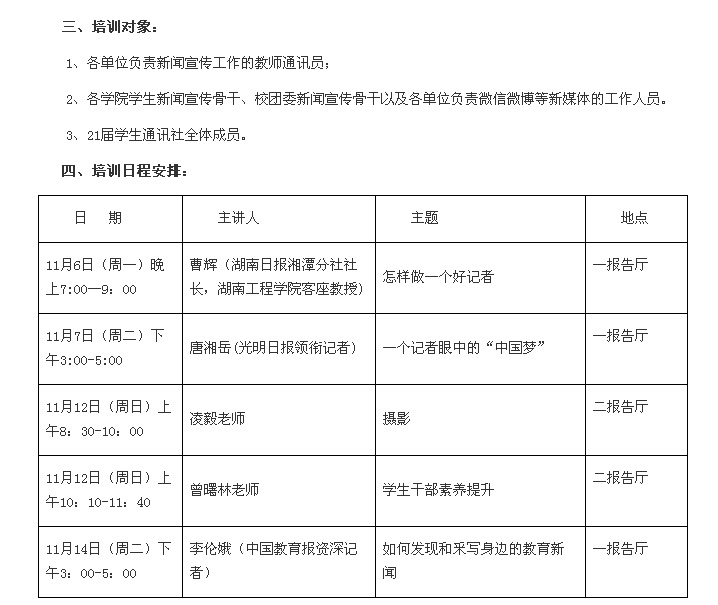 为了进一步培养和提升管理学院宣传人才的新闻写作能力和技巧,特选拔一批宣传干部参加党委宣传部举办的专题学术讲座。具体安排如下: