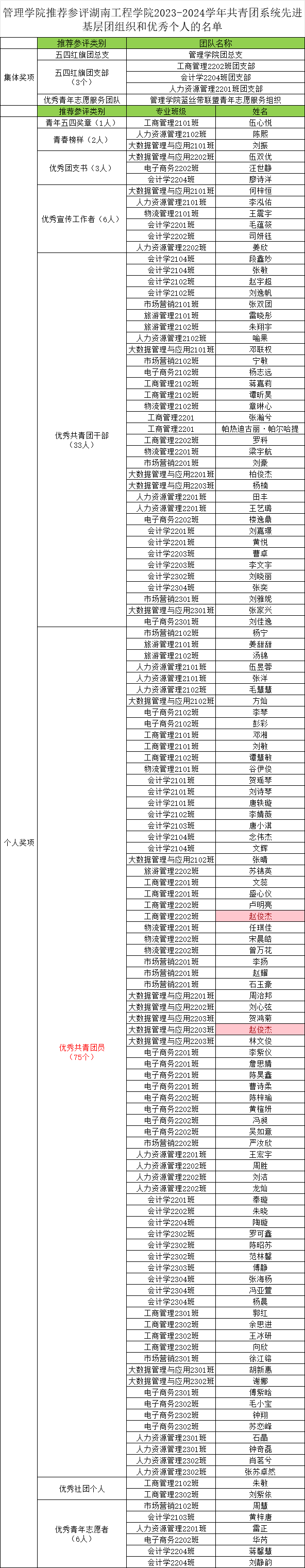 根据《中国共产主义青年团章程》《关于评选伟德国际victor19462023-2024学年共青团系统先进基层团组织和优秀个人的通知》(校团字2号)相关文件精神,经个人申报、班级团支部推荐、学院团总支评审,拟推荐以下先进基层团组织和优秀个人参评伟德国际victor19462023-2024学年共青团系统先进基层团组织和优秀个人,现予以公示,具体名单见附件。