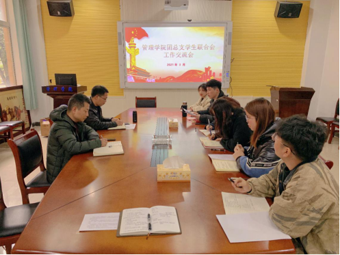 为深入了解管理学院团总支学生会(以下简称团学会)整体情况,逐步提升团学干部工作能力。2021年3月2日下午,在F104召开管理学院团学会工作交流大会。会议由团总支书记陈祎婷主持,党委书记余博、副书记张宏、全体主席团成员出席会议。