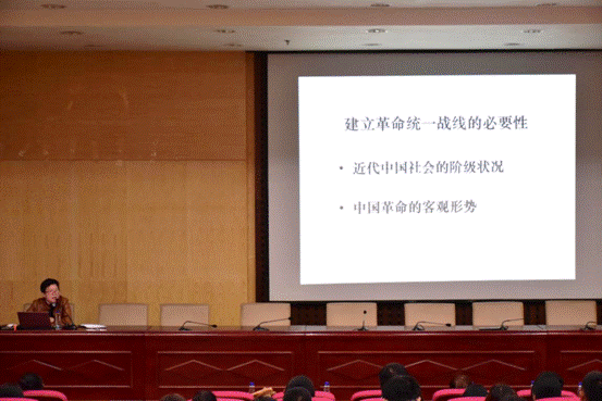 讲座开篇,田小玲老师便为同学们介绍了统一战线的必要性。“统一战线使得我们能够团结一切可以团结的力量去对抗反对势力。同时统一战线让马克思列宁主义的普遍原理与中国的具体实际相结合,使中国逐步总结出一套具有中国特色的统一战线理论和政策”。田小玲老师如是说。
