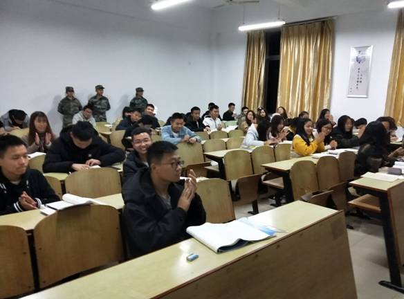 12月4日晚,伟德国际victor1946新校区校卫队的队员来到了工商管理专业进行了以"防火,防盗,防抢"为主题的下班宣传。