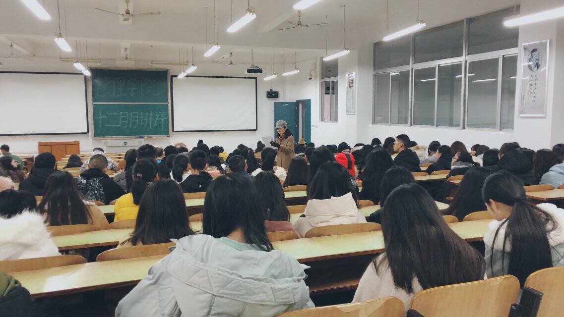 本月月评会具体内容如下:一、近期工作通报:1.学风建设:提高课堂的到课率和抬头率;2.备考英语四六级:报考了英语四、六级的同学认真备考;全院师生务必严格按相关规定和要求监考、参考。3. 表彰大会评选即将结束,各班班长需认真查看表彰人员评比细则,组织学生参与评比,并通知参评人员及时上交评比材料。4.教室、宿舍卫生:各班同学保持上课的教室干净整洁,如果出现大量垃圾、广告张贴或墙壁涂鸦,将在班长群公布;务必将垃圾带出宿舍楼,保持宿舍干净整洁;叮嘱同学们注意寝室用电安全;加强文明督导环节工作。二、其他工作汇报:“菜鸟”到“霸道总裁”的主题讲座顺利召开、“正泰杯”的报名工作宣传及准备。三、冬季安全系列教育及心理健康教育:1. 12月7日召开的女性健康知识讲座为女同学们提供了一个了解自己生理知识的机会;2. 12月7日召开的消防安全讲座,提高了同学们的消防安全意识。3.管理学院安全督查部对防火防盗等安全问题进行宣讲:提醒同学们防骗、禁大功率电器、防病御寒、外出需结伴而行,注意车辆、坚决抵制校园贷、积极举报代课;4.新校区校卫队将在近期完成管理学院所有专业的校园安全知识宣讲;5.心理咨询室预约。