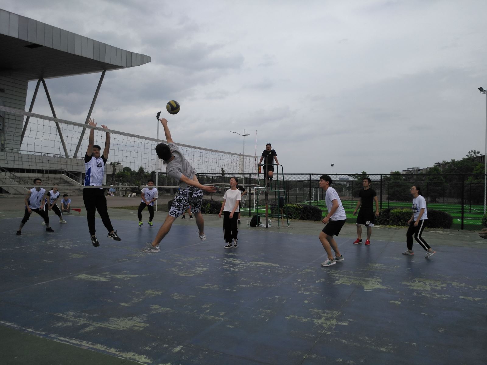 比赛过程中,管理学院排球队团结协作、默契配合,一个个威猛的扣球、一次次精彩的拦网、队员们奋力的救球、巧妙的配合将比赛推向高潮,赢得了场边观战师生的阵阵喝彩,展现了管理学院顽强拼搏和不言放弃的精神风貌,尽显管院雄风、谁与争锋的魄力。每一次起跳,都是对梦想最真实的触及;每一次扣球,都是对困难最有力的回击!