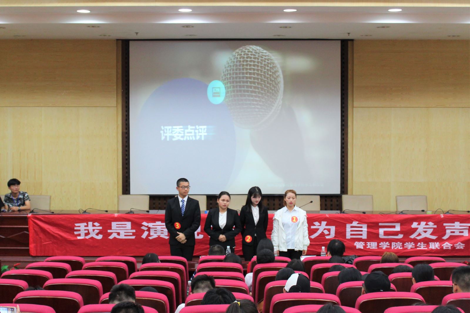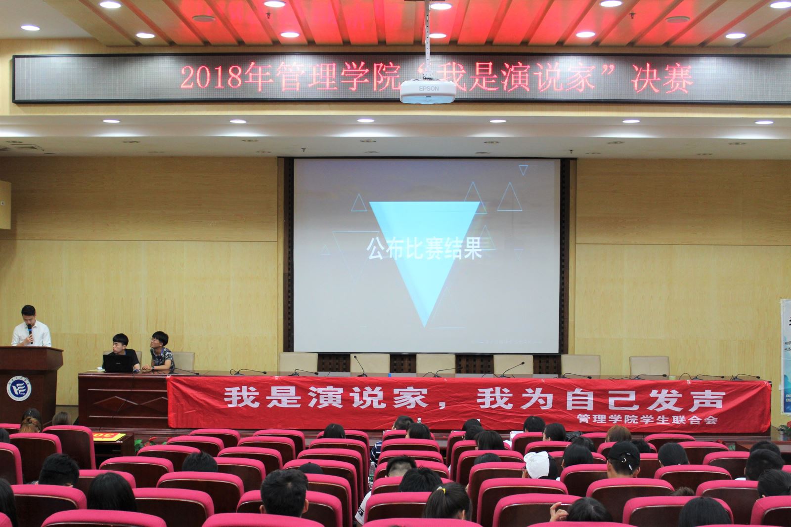 2018年5月4日7点整,由伟德国际victor1946管理学院学生联合会主办,管理学院学生联合会就业指导部与管理学院学生联合会实践部承办的《我是演说家》总决赛在二报告厅正式举行。