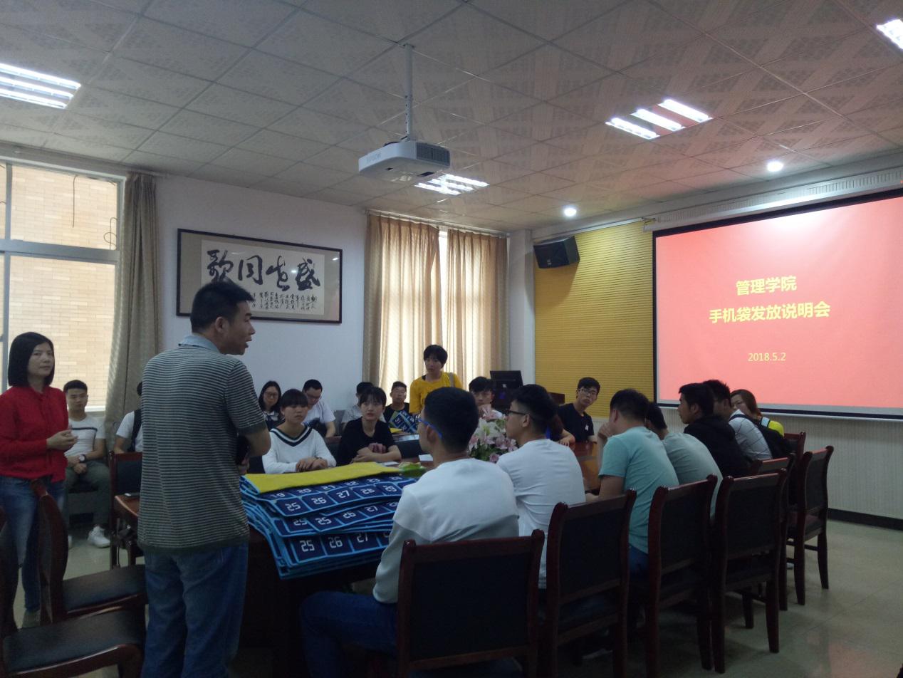 2018年5月2日中午12:20,管理学院组织大一到大四各专业班级班长在F104进行班长会议的召开,学办主任罗荃老师主持此次会议。