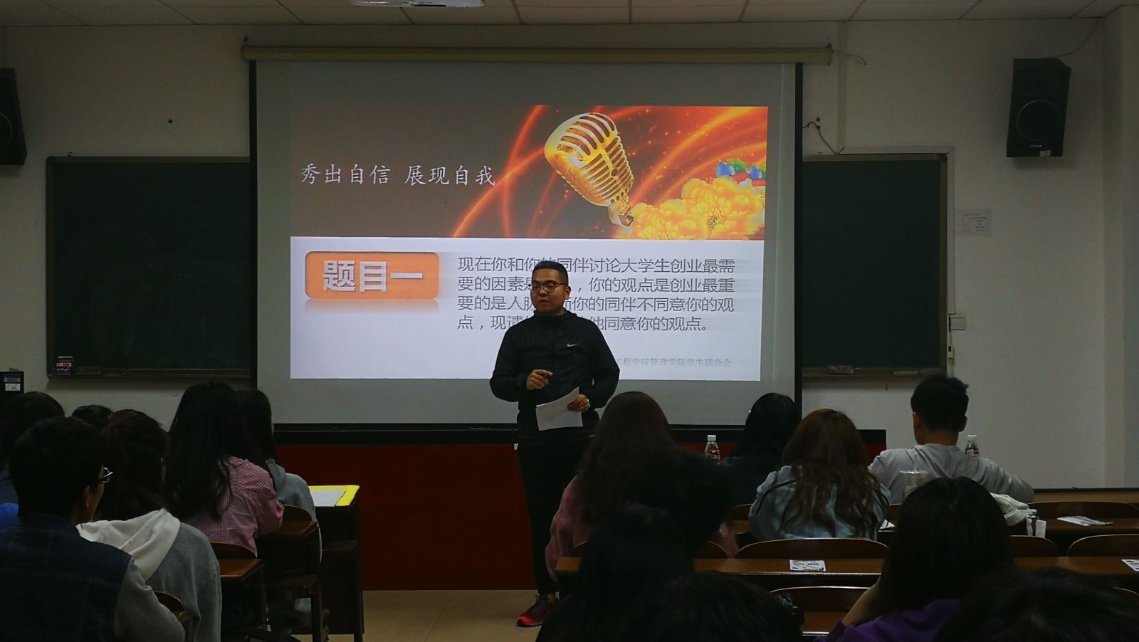 2018年4月24日晚19点,由伟德国际victor1946管理学院学生联合会主办、管理学院学生联合会实践部及就业指导部承办的“我是演说家”复赛在新校区G505教室正式拉开序幕。此次比赛旨在训练学生们的语言表达能力和逻辑思维能力,为日后步入社会打下坚实的基础。